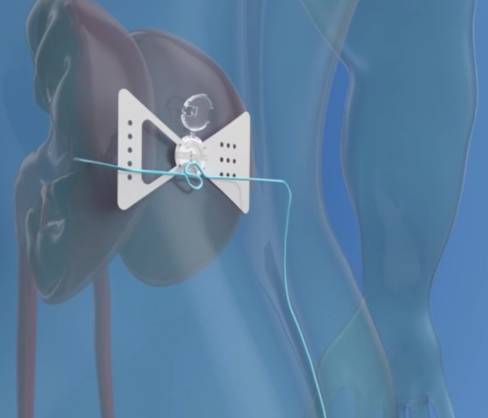 The device features strategic holes around its shell, allowing the medical team to add extra anchoring if needed.